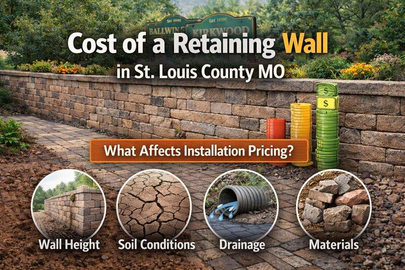 The honest answer is that retaining wall cost depends on several variables including height, length, material choice, soil conditions, drainage requirements, and access to the property. In areas like Ballwin, Kirkwood, Manchester, Oakville, and Town and Country, clay soil and elevation changes can significantly impact pricing.